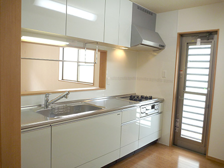 キッチンは対面式のシステムキッチンで、清潔感のある白を選びました。