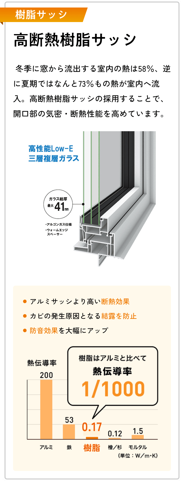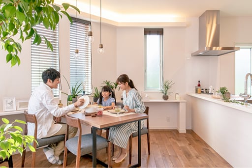住まいの心地よさ高性能樹脂サッシ、高気密・高断熱、換気システムが、室温や空気、光をコントロールし家族みんなが快適に過ごせる空間を実現します。