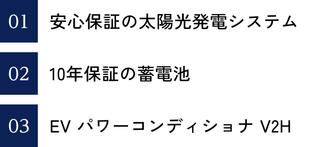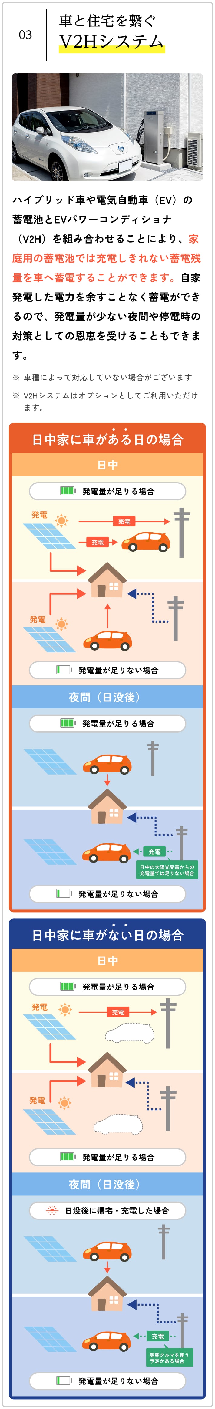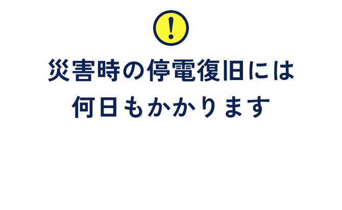 万が一停電で電気が使えなくなっても、クルマから電気を取り出して普段に近い暮らしができます。V2Hシステムなら、もしものときに健康状態に不安のある家族や、小さなお子様、ペットが心配な場合も、住み慣れた家での在宅避難が可能になります。日中の太陽光発電を組み合わせれば、長期間の停電でも安心してお過ごしいただけます。