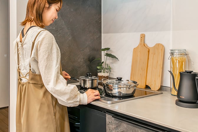 - IH(中火の消費電力:350W〈コンロ1口使用・中火で30分〉。1日あたりの調理回数は朝・昼・夜の3回の設定