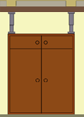 家具と天井の間に突っ張り棒をかませて倒れにくくします。但し、家具の端の枠組みに当たっていないと押さえが利きません。