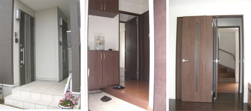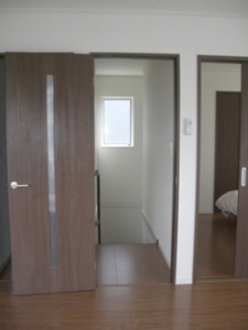 ▲(中央)若夫婦世帯の玄関ホール。正面の扉から、親御さん世帯のリビングへ行き来ができる。
