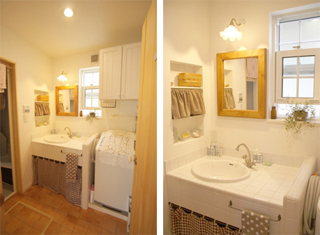 白いタイルがかわいらしい雰囲気の洗面台は大のお気に入りです。