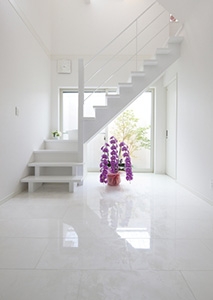 ▲玄関に足を踏み入れると、真っ白で広々とした開放感溢れる空間が広がる。