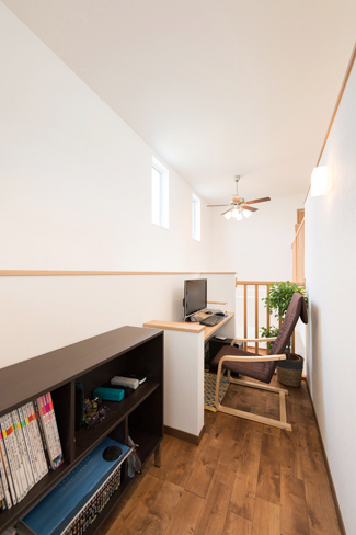 自分だけの空間というのが、すごく嬉しくて。壁の上部を開けてもらったので空間が広く明るくなり、座っていても家族の気配を感じることができます。