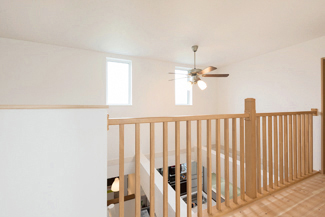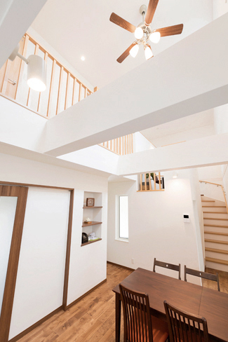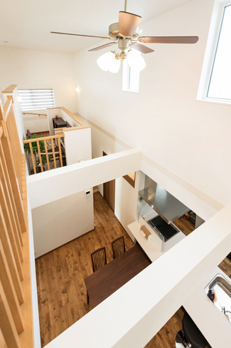 上部の吹き抜けもすごく明るいので、昼間は電気をつけずに過ごせます。朝起きたら家の中がとても明るいです。