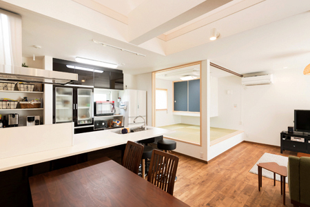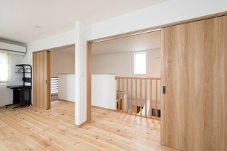 今は広い一部屋ですが、将来は二部屋に分けられるようにしています。また、引き戸にすることで使用スペースも広くしました。