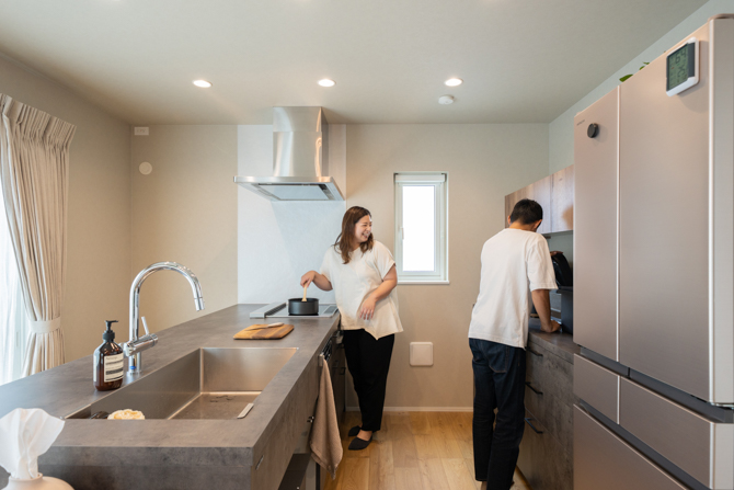 グラフテクトのキッチンは、奥さんも背が高いので90㎝高くしています。