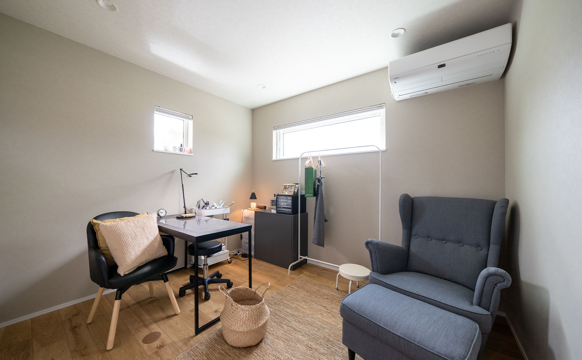 1階の入り口横の部屋は、奥さんがネイリストなので家でサロンができるように部屋を作りました。
