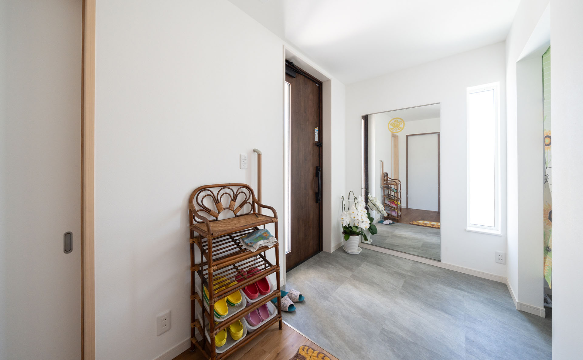 よくあるのが玄関があってクローゼット経由で同じ廊下に戻ってきてLDKに入るという形だと思うんですけど、できるだけ片づけたくなくて、お客様はお客様だけ。家族は家族だけの動線にすれば、お客様の方さえ綺麗にしとけば家族の方は手を抜けるので完全分離の2wayの間取りにして良かったと思います。