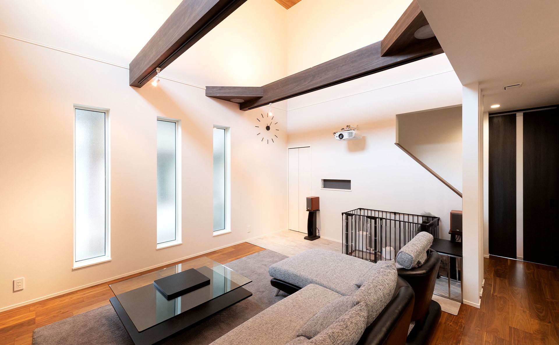 後は僕自身がまあスクリーンで映画を観たりとかするのが趣味だったので、スクリーンをつけれるような形と、スピーカーの配線とかにこだわらせていただきました。