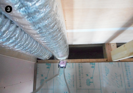 熱交換気ユニットを通じて、新鮮な外気の取り入れと住居内の排気を行い、空調室に配置したルームエアコン1台で室温をコントロール。空調室で暖冷房された空気をダクトやエアチャンバーで各居室へ運びます。