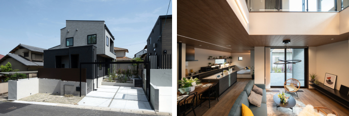 広い敷地を活かしたモデルハウスは、家の内外が自然とつながる間取りが目を惹く住まい。デッキテラスやスカイバルコニーなどアウトドア空間が満載です。2階には、子ども部屋や書斎、主寝室、バルコニーも設けました。太陽光発電システムを7.5kW搭載し、家計と地球にやさしい住宅を実現しました。YUCACOシステムで年中快適にお過ごしいただけます。