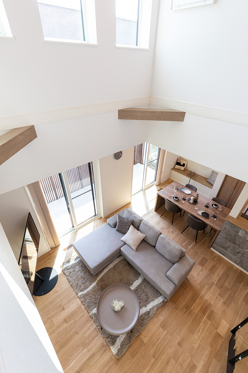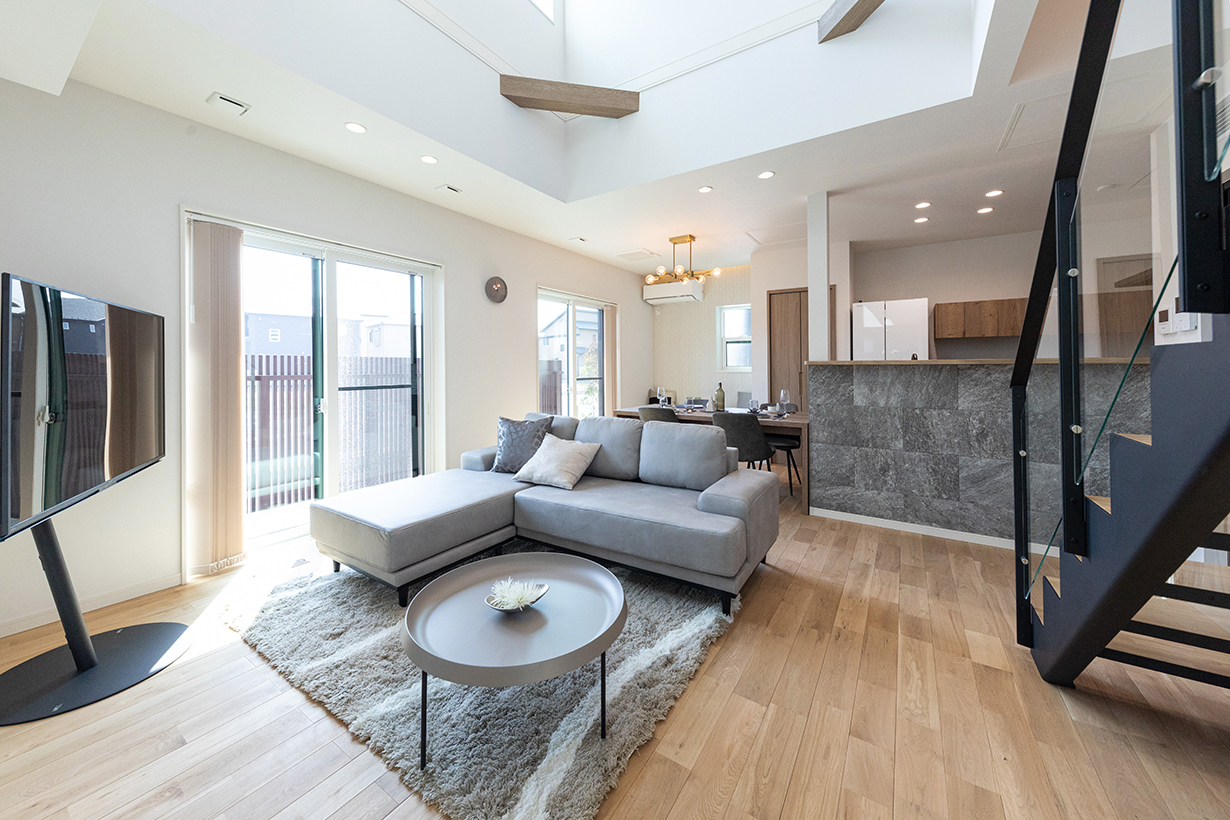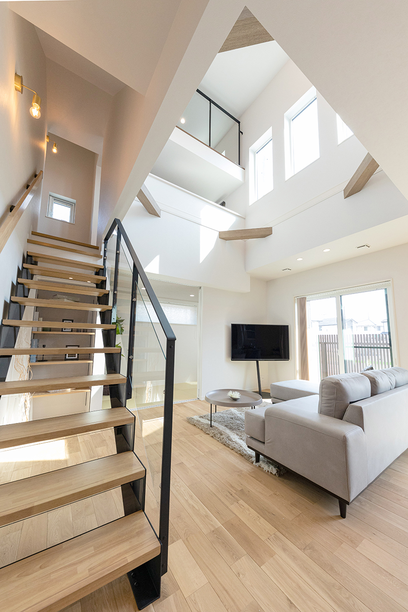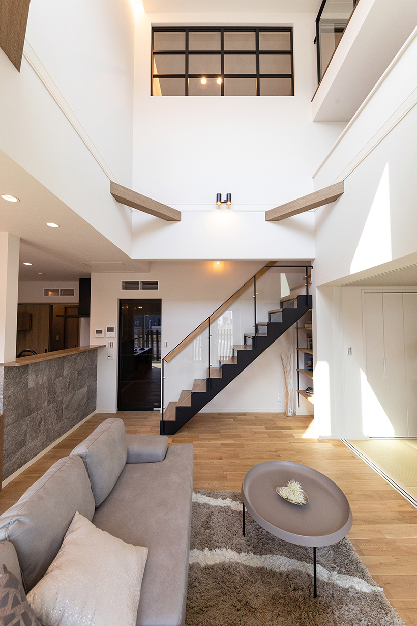 上尾モデルハウス/リビング/吹き抜け/リビング階段