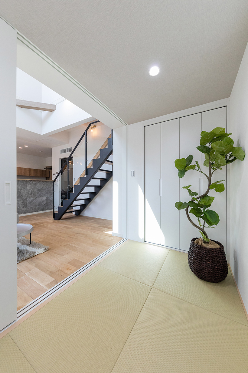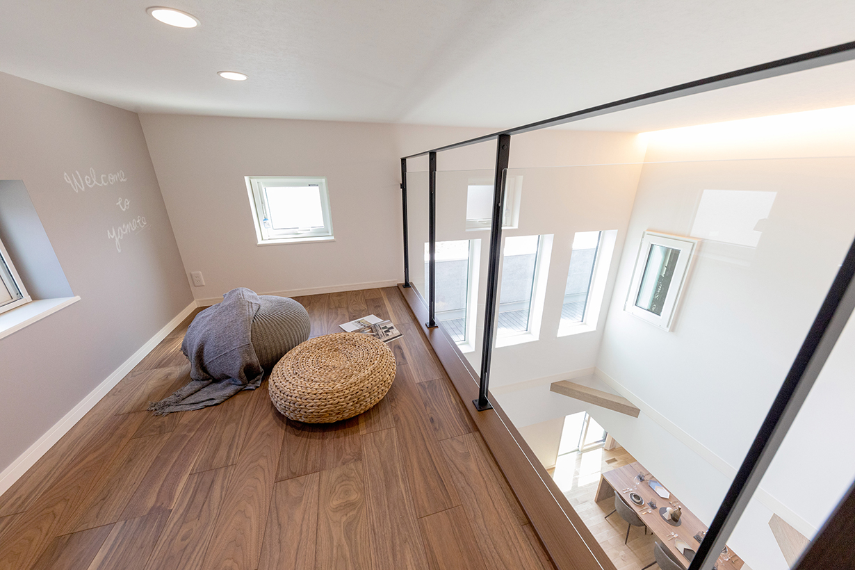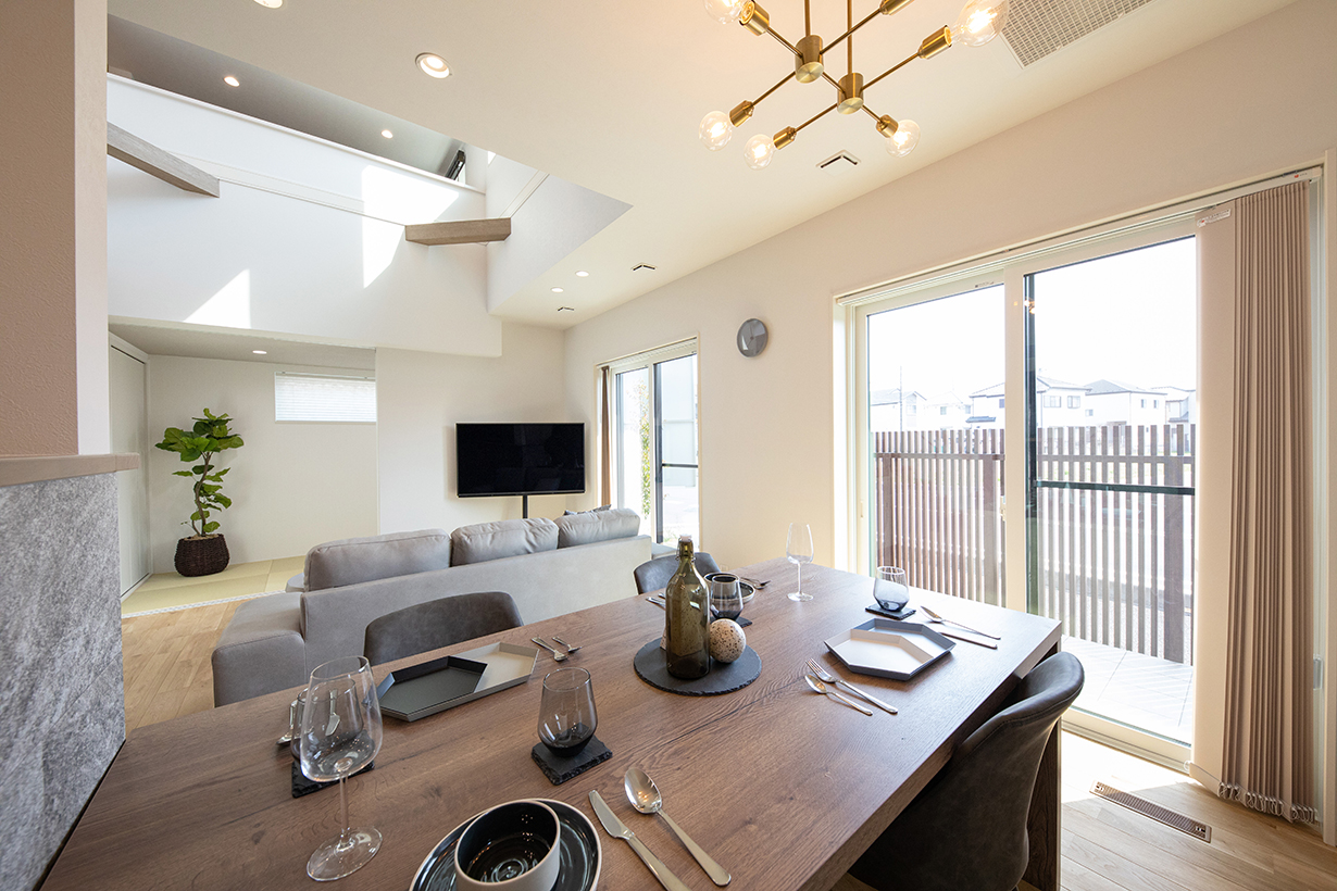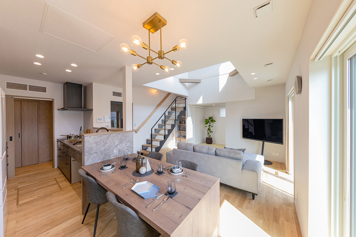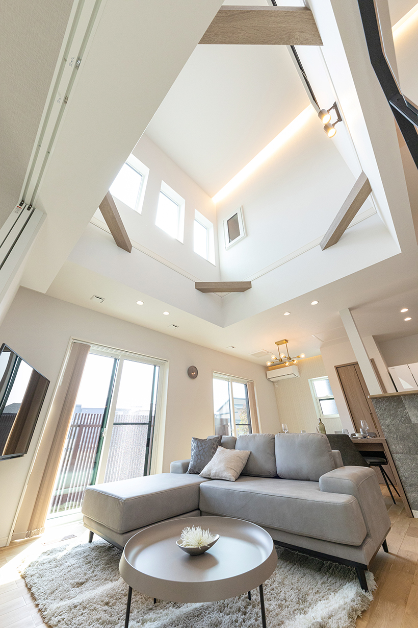 上尾モデルハウス/リビング/吹き抜け/リビング階段