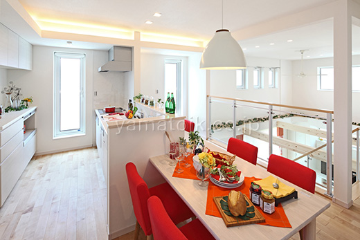 奥様が主役(中心)の家 ダイニングキッチン-2(2階)