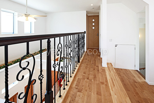 心地よい光が溢れるステップリビングのある家 2階廊下