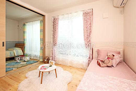 心地よい光が溢れるステップリビングのある家 洋室①②(将来間仕切り)