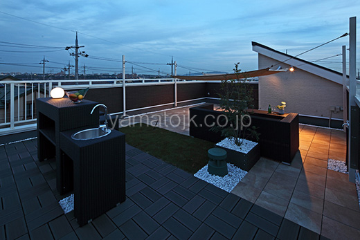 心地よい光が溢れるステップリビングのある家 屋上庭園-2