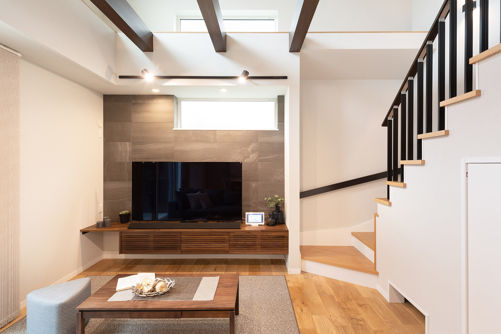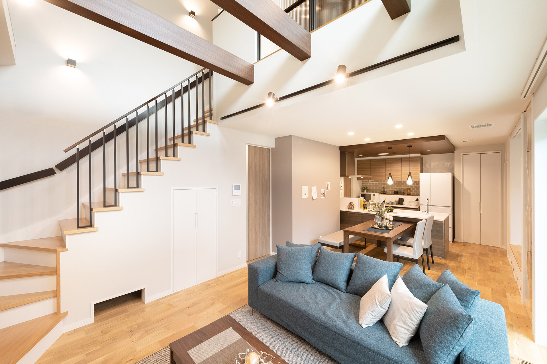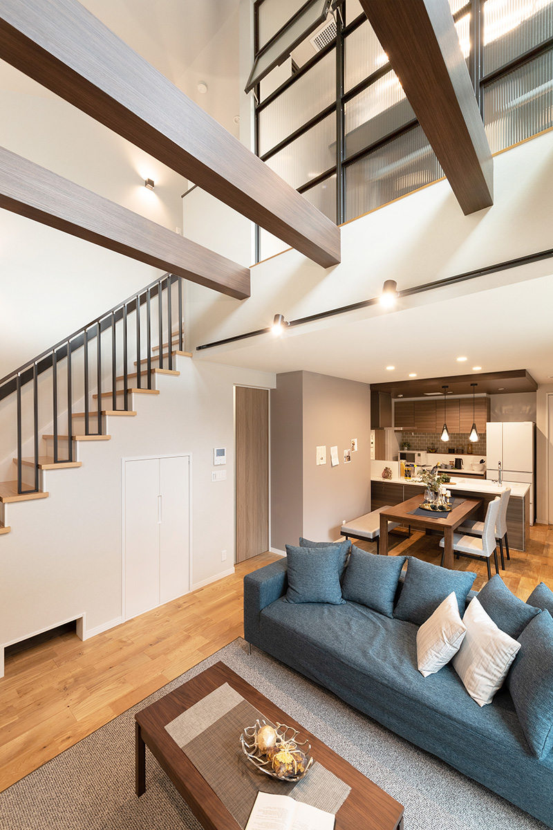 滋賀モデルハウス/リビング/リビング階段/吹き抜け