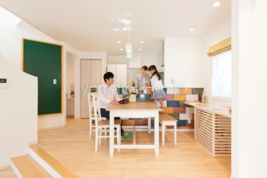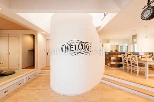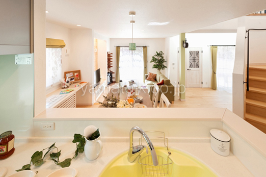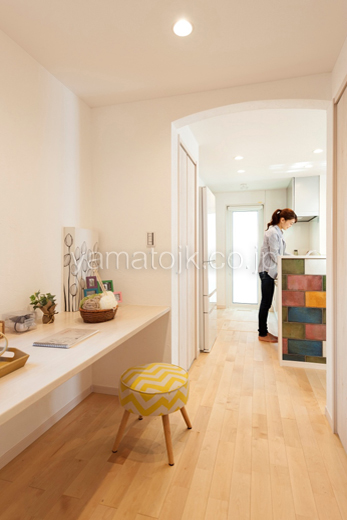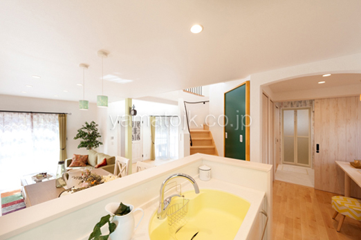 キッチン/ママヌーク/黒板(連絡ボード)/動線/回り階段