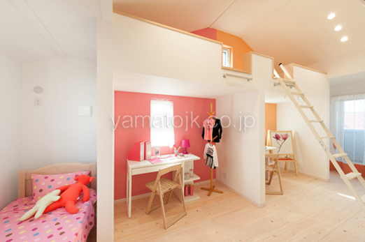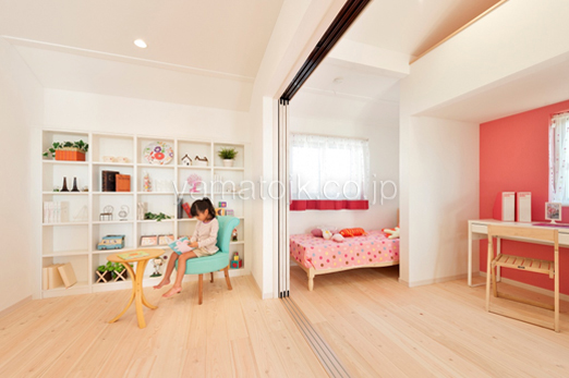子供部屋(3枚引き込み扉)/高天井(将来間仕切り)/ロフト