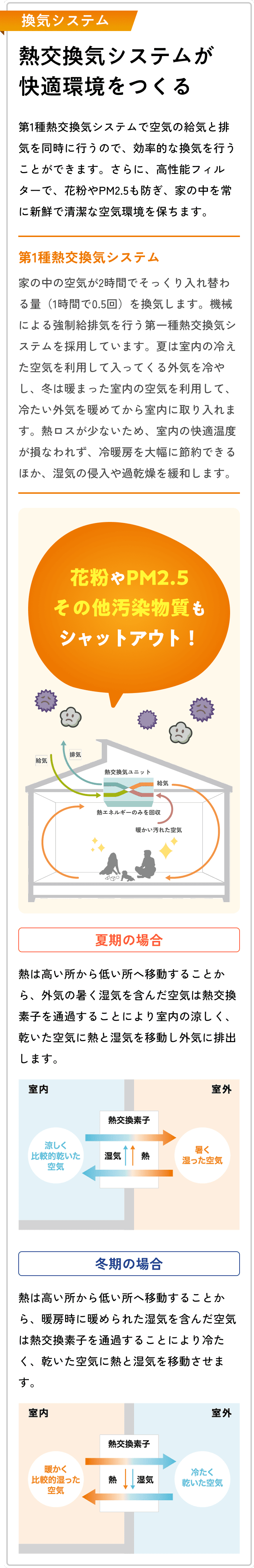住まいの心地よさ高性能樹脂サッシ、高気密・高断熱、換気システムが、室温や空気、光をコントロールし家族みんなが快適に過ごせる空間を実現します。