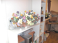 ▲白い壁に造花が栄えます