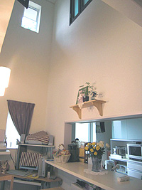 ▲対面キッチンの向こう側は吹き抜け