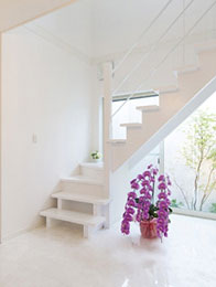 ▲玄関に足を踏み入れると、真っ白で広々とした開放感溢れる空間が広がる。