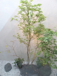 ▲「坪庭に石像やプールをつくることも考えましたが、自然の木を植えて正解でした。」とI様
