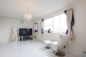 明るくて広いリビングが良かったので、2階に配置しました。内装はとことん真っ白にこだわりました。家具も新しく買い揃えたものは、すべて白いもので統一したんです。