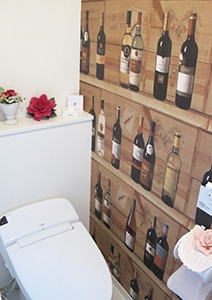 特に2階のトイレのクロスがお気に入りです。ワインセラーの柄なんですよ。なかなか他の人は選びませんよね。遊びに来た友人は、お店みたい!と言って、よく驚いています。1階のトイレのクロスは、ピンクのハート柄ですごく可愛いんです!こちらもお気に入りですね。