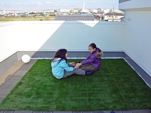 ▲見晴らしの良い屋上庭園は、子どもたちの遊び場としても、家族の憩いの場としても大活躍