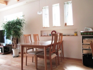 ▲ダイニングにも窓をたくさん設け、明るくておしゃれな空間に窓の下には小物が飾れるニッチも
