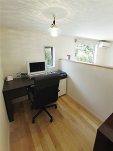 リビングにいる家族ともコミュニケーションが取れ、ほど良い広さ、空間の為、集中できます。