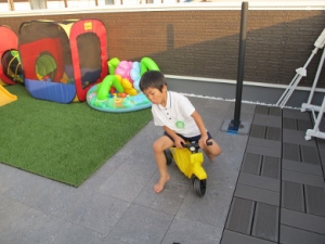 住み始めて一か月でまだ実感がないのですが、屋上庭園で夕方このぐらいの時間、お風呂上りに子供とここでぼーっと座って、星座を見ていたりする時間はすごくゆっくりできる時間ですね。