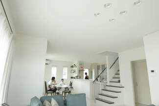 ▲天井に埋め込むタイプのダウンライト。照明器具が見えないので空間が広くスッキリ感じます。