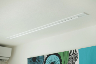 室内での物干しができ、使用しない場合はすっきり収納できるので便利です。設置場所については、日当たりやエアコン位置など設計士さんにアドバイスをいただきながら決めました。洗濯物もたくさんあるのでものすごく便利です。梅雨の時期などとても役立っています。