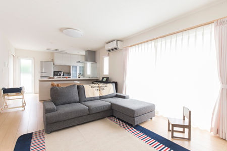 子どもたちが大きくなっても自然とリビングに集まれるような、光がたくさん入り開放感のある明るい部屋にしたくて、オプションで大きな窓に変更しました。風通りも良く明るいリビングになりました。