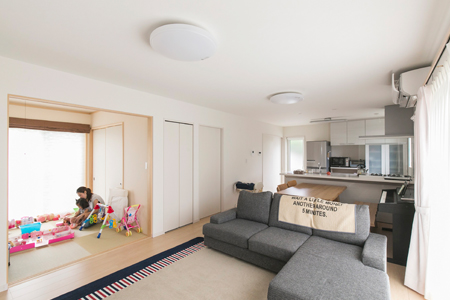 ▲リビングとフラットにつながる和室は小さなお子様にも安心。