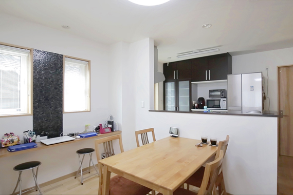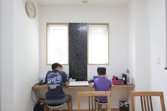 目の届くところで宿題などが出来るようにと設けました。カウンターがあることで、子どもたちが勉強をするために部屋に行くことはないかなと思います。