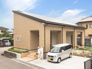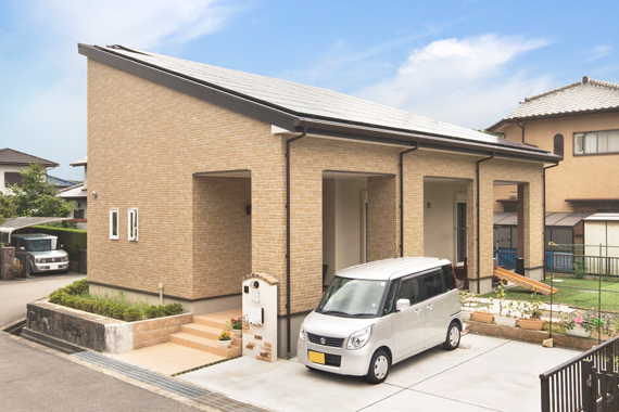 ▲建物の形を屋根の面積が大きい平屋風にすることで、大容量の太陽光発電を設置できる。(18.2kW搭載)