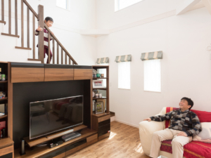 これだけ大きな吹き抜けをつくると、個別エアコンでは効率が悪いので全館空調が良いですね。